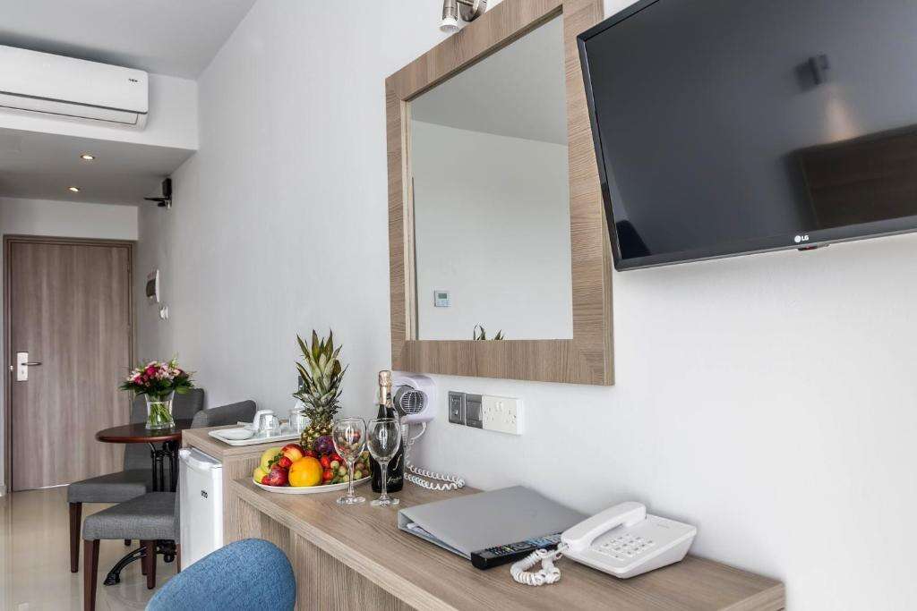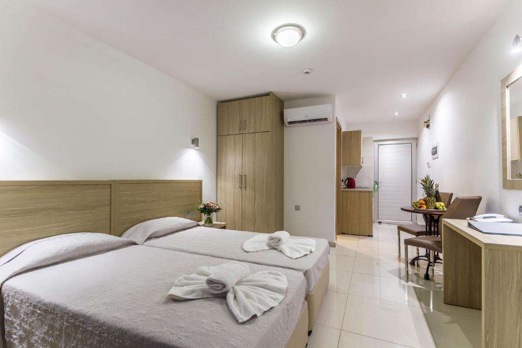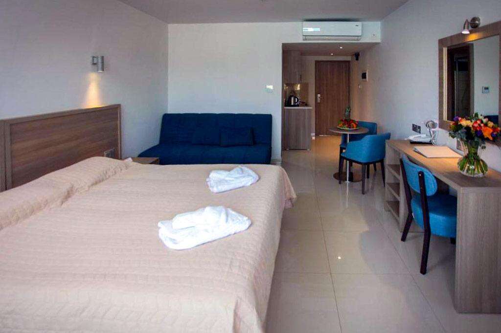 Szobák: minden deluxe szoba egy hálószobás (~22m2), modern berendezésű, légkondicionált, fürdőszobás, hajszárítóval, síkképernyős tv-vel, vízforralóval, szobaszéffel, hűtővel és telefonnal felszerelt. A deluxe családi szobák hasonlóan berendezettek, nagyobb lakótérrel (~35m2) rendelkeznek, a szobákban egy szófa (kihúzható kanapé) is található. A szuperior stúdiók felszereltsége és berendezése a deluxe szobával azonos, azonban a szobákban egy kis konyharész is kialakításra került (főzési lehetőség). Minden szobához erkély vagy terasz tartozik, szárazföldi vagy medencére néző kilátással.