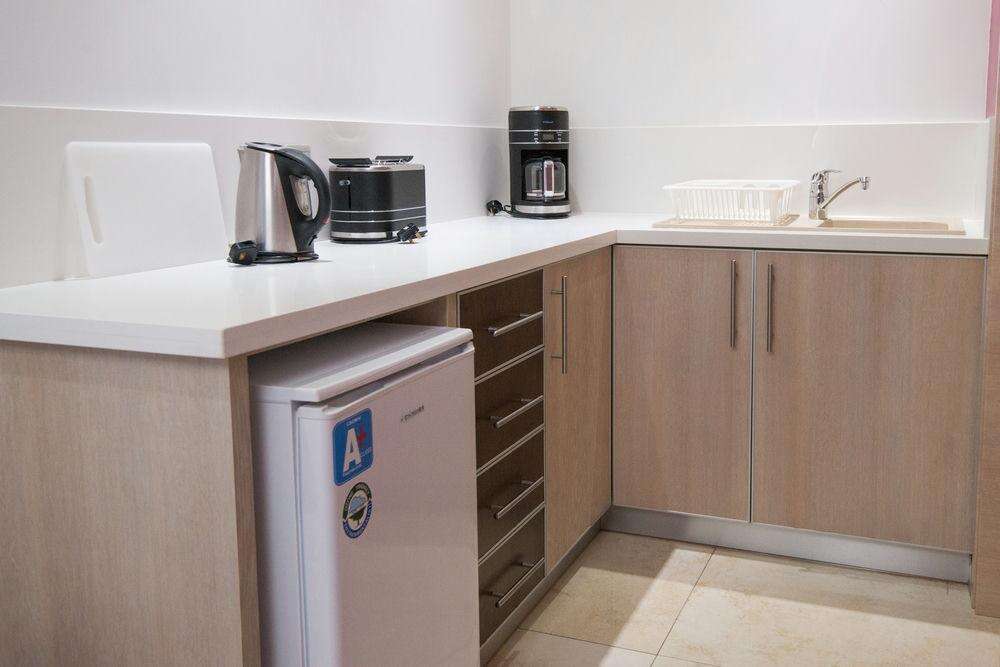 felszerelt konyhasarokkal (mini hűtő, főzőlap, vízforraló, edények), étkezőrésszel rendelkezik. A