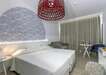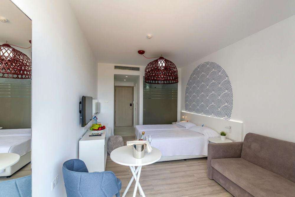 Szobák: minden standard szoba kortárs stílusú, világos színvilágú, modern, egy hálószobás (~22 m2), légkondicionált, fürdőszobás, hajszárítóval, síkképernyős tv-vel, vízforralóval (kávé és teafőzési lehetőség) és telefonnal felszerelt. A szuperior szoba modern bútorzattal és extra kényelmi funkciókkal, mint például kávéfőző, fürdőköpeny és papucsberendezése és kialakítása elegánsabb. A családi szoba (4 fős), azonos felszereltséggel, mint a standard szoba, nagyobb alapterületű (~25 m2), ahol a gyermekek elhelyezésére emeletes ágyon biztosított. Minden szobához erkély tartozik szárazföldre, oldal tengerre vagy tengerre néző kilátással. Széf és minihűtő térítés ellenében a helyszínen bérelhető.