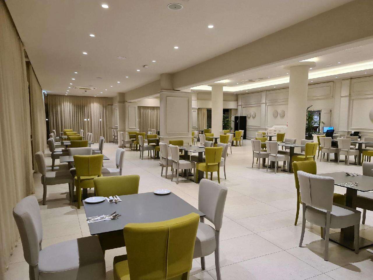 Étkezés: büfé reggeli (szalonna, főtt tojás, rántotta, virsli, sajt, felvágott, péksütemények, zöldségek, tea, kávé, lekvár, müzli). Felár ellenében félpanzió reggelivel és büfé vacsorával vagy all inclusive ellátás foglalható, benne: reggeli, ebéd és vacsora, napközben snack ételek, jégkrémek, korlátlan italfogyasztás 10–23 óra között (kivéve nemzetközi márkájú alkoholos italok). A medencebár könnyű harapnivalókat és frissítő italokat kínál egész nap.