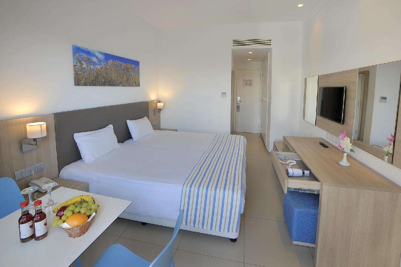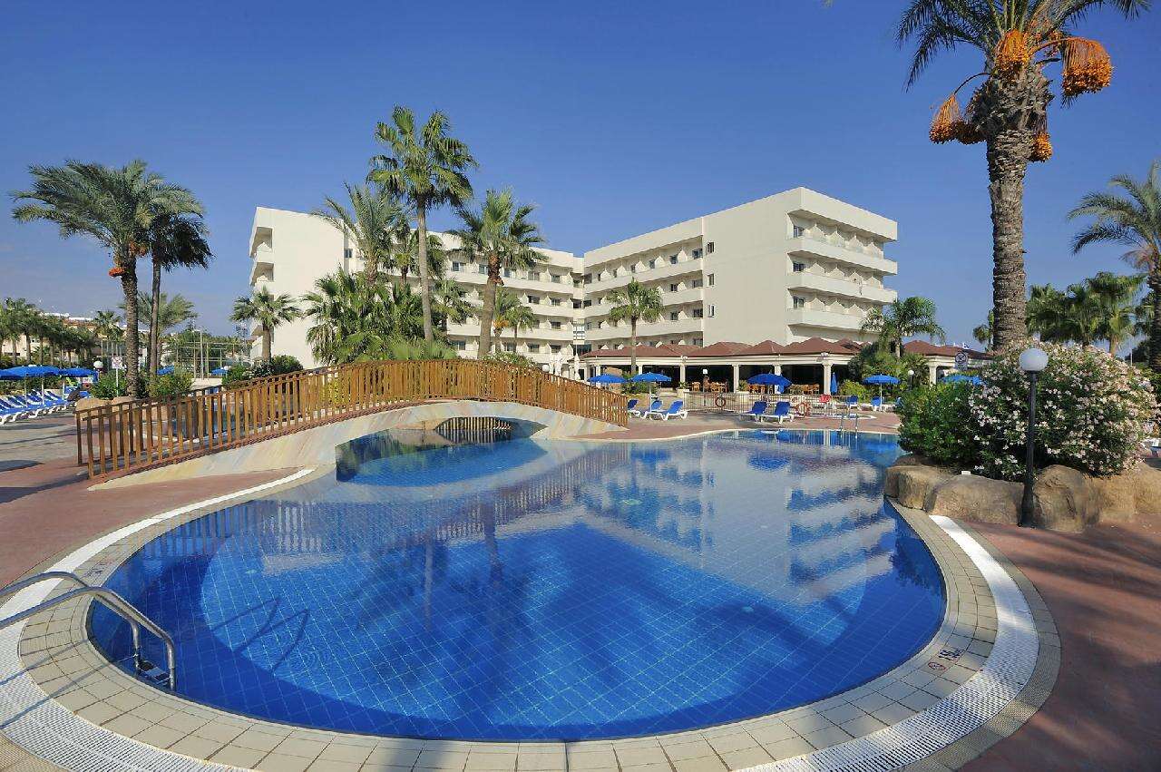 Ayia Napa városközpontjától kb.2 km-re, az üdülőhely leghíresebb részén, a fehér homokos és pálmafás Nissi strandtól mindössze kétszáz méterre épült, főépületből és több kis villaszerű bungalóból (a főépülettől út választja el) álló modern és barátságos 169 szobás szálloda.