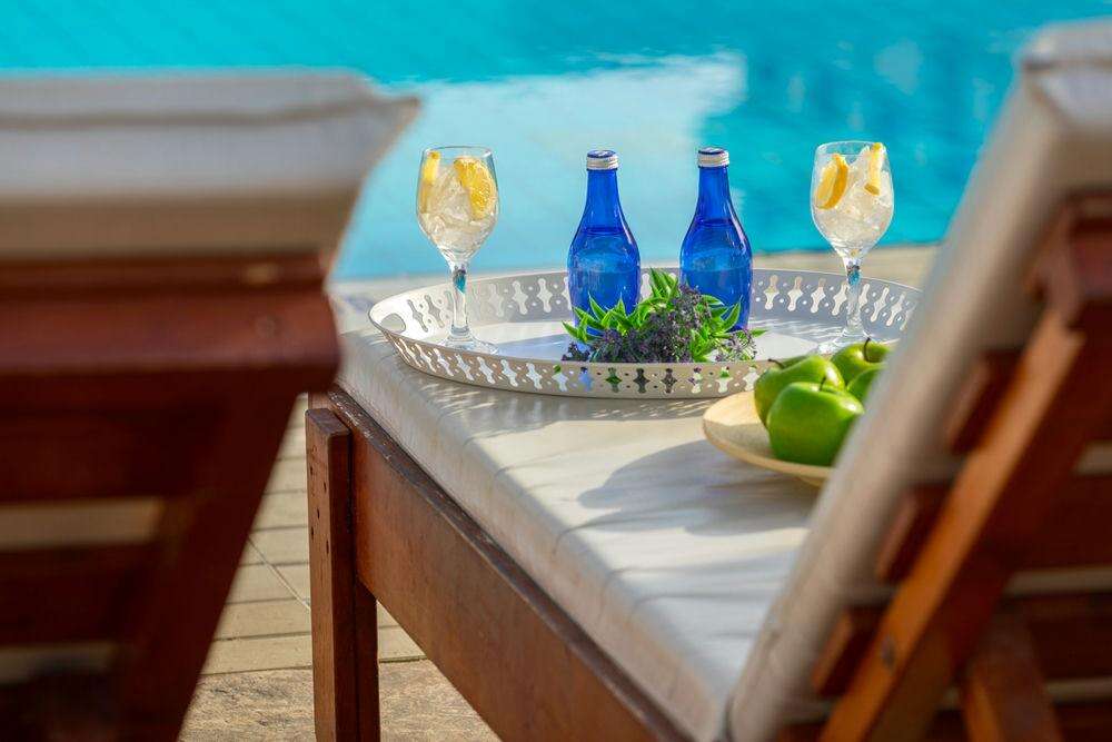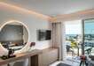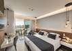 Szobák: minden szoba ízlésesen berendezett, egy hálószobás(~16m2), fürdőszobás, légkondicionálóval, hajszárítóval, vízforralóval, síkképernyős tv-vel és telefonnal felszerelt. Széf és hűtő térítés ellenében bérelhető. A szobákhoz saját erkély tartozik, ahonnan az utcára, medencére vagy oldalirányból a tengerre nyílik kilátás.