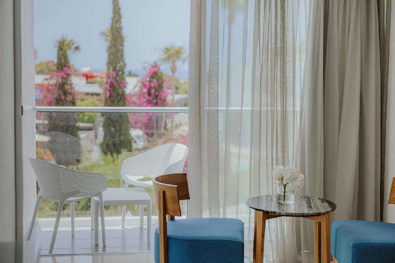Ayia Napa népszerű tengerparti üdülőhelyen, a városközpont és a bulinegyed közelében található, kategórián felüli minőségű, modern, letisztult dizájnnal rendelkező, 88 szobás hotel. Az üdülőhely központi homokos strandjától (Limanaki Beach) ~600 méterre fekszik.
