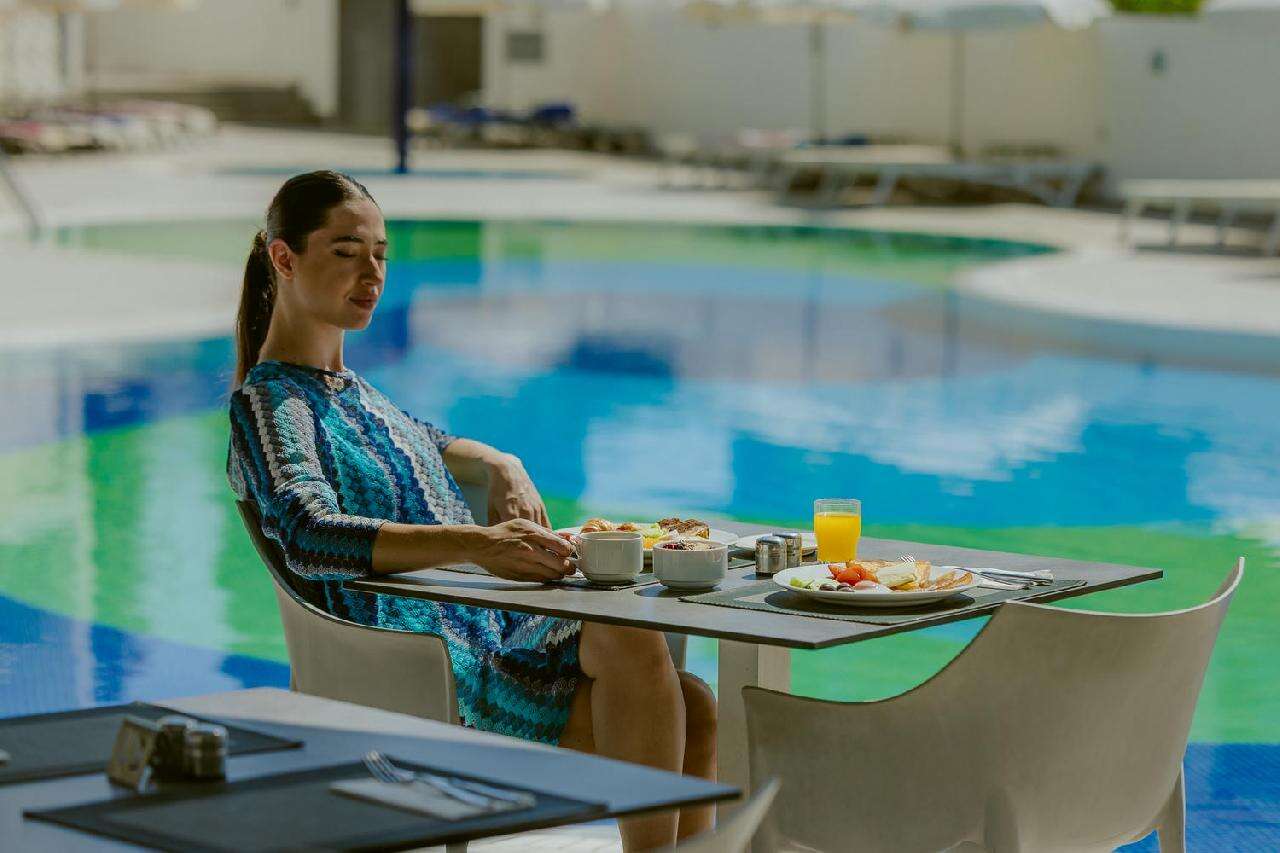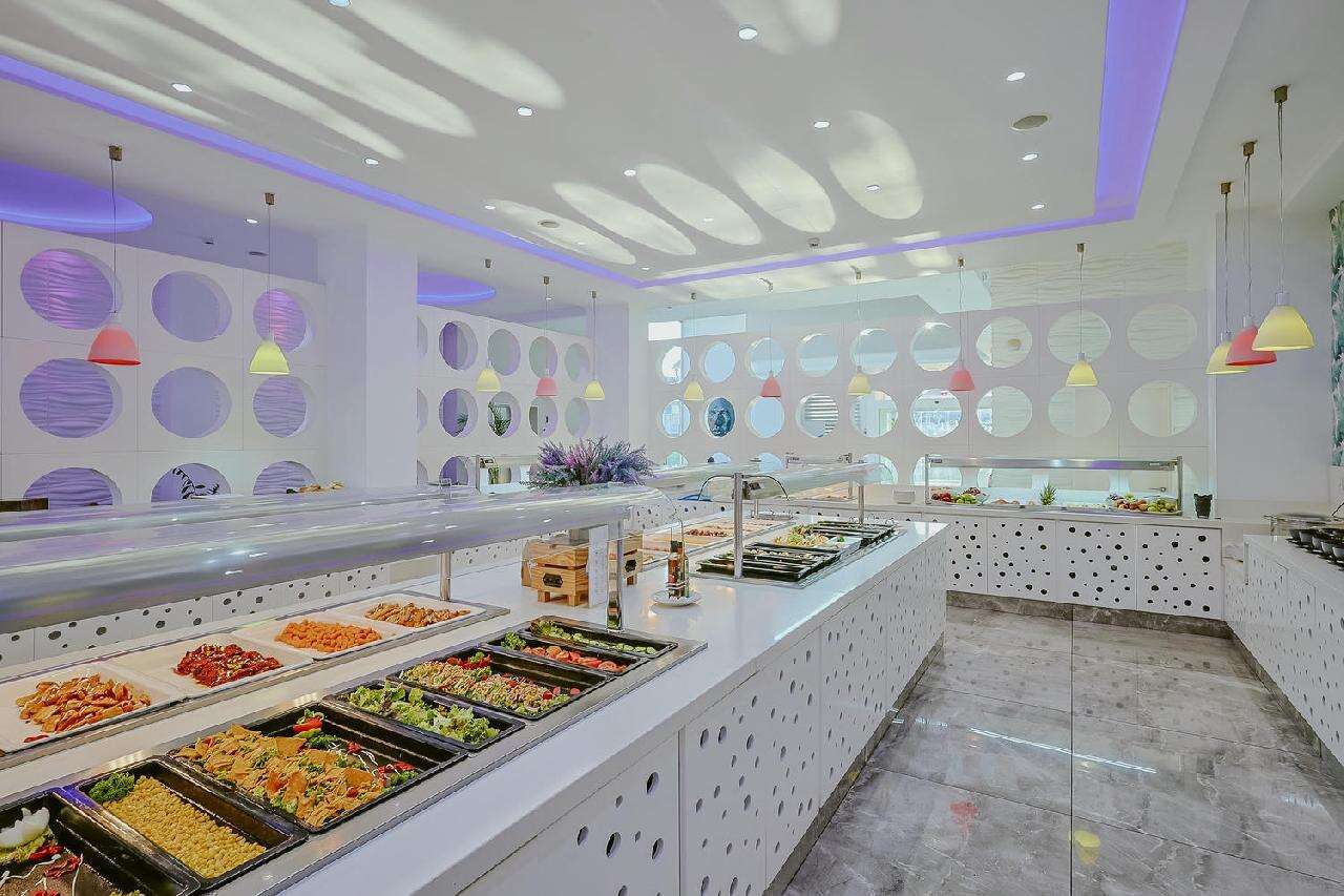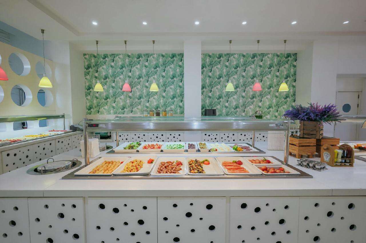 Étkezés: Félpanzió, büfé reggelivel és büfé vacsorával. A főétkezések során széles választék várja a vendégeket, beleértve a helyi ciprusi fogásokat és a nemzetközi konyha kedvenceit is. A vacsora friss salátákat, húsokat, halakat és tésztákat tartalmaz, kiegészítve különféle desszertekkel, helyi gyümölcsökkel és süteményekkel. Felár ellenében all inclusive ellátás foglalható, benne: reggeli, ebéd és vacsora, napközben snack ételek és szendvicsek, korlátlan italfogyasztás 10–23 óra között. Az italválaszték pohárban felszolgálva, a szálloda által meghatározott helyi és alkoholos és üdítőitalokra, vízre és gépi kávéra vonatkozik. Az import és palackozott italok fogyasztása térítéshez kötött