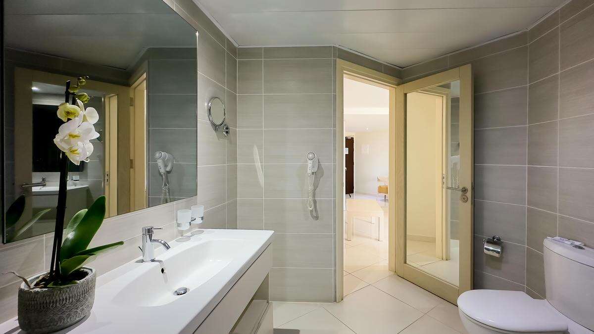 Szobák: minden standard szoba ízlésesen dekoratív, egy hálószobás(~24m2), fürdőszobás, légkondicionálóval, hajszárítóval, vízforralóval, síkképernyős tv-vel, hűtővel, széffel és telefonnal felszerelt. A prémium szoba extra luxust, tágasabb teret (~28m2) és prémium szolgáltatásokat kínál, felszereltségében extra kényelmi szolgáltatások találhatók, mint például: fürdőköpeny, szobapapucs és Nespresso kávéfőző gép. A szobákhoz erkély vagy balkon tartozik szárazföldre, korlátozottan tengerre néző, illetve tengerre néző kilátással.