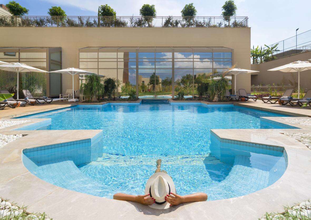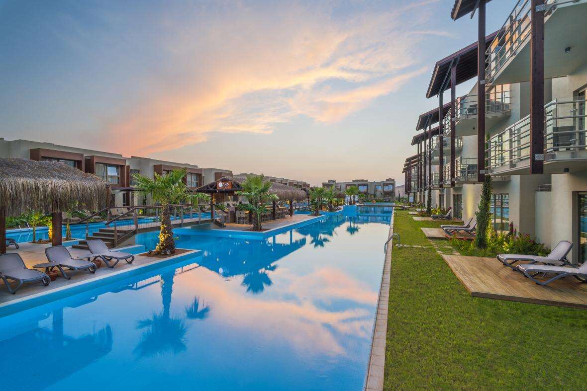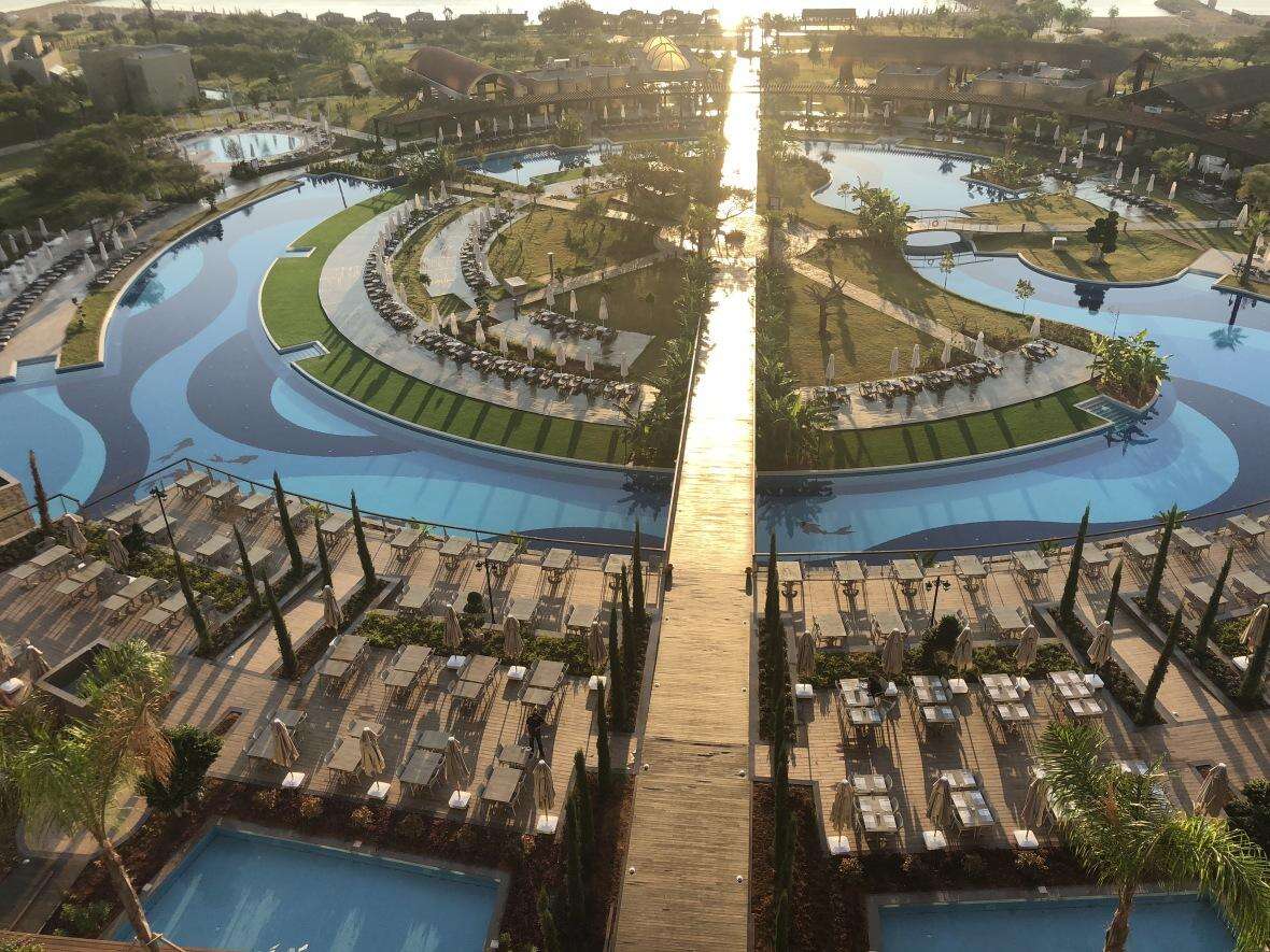 A szálloda hatalmas 12 hektáros területen helyezkedik el, benne hatalmas kerttel, medencerendszerrel, élményfürdővel és csúszdaparkkal, kiépített homokos tengerparttal és egy romantikus stéggel.