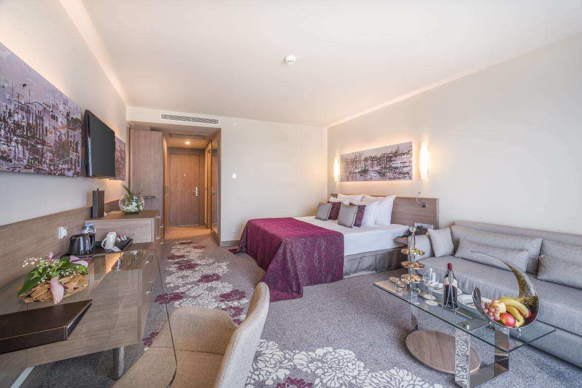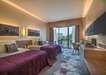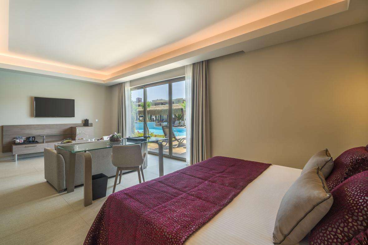 Szobák: minden deluxe szoba modern stílusú, egy hálószobás (~45 m2), luxus bútorokkal berendezett, természetes fénnyel teli, légkondicionálóval, fürdőszobával, hajszárítóval, LCD tv-vel és telefonnal (ingyenes Wi-Fi), széffel, vízforralóval (tea és kávé bekészítéssel) és minibárral (üdítőitalokkal - napi utántöltéssel) felszerelt. A szobákhoz erkély vagy terasz tartozik kertre, oldalt tengerre néző vagy tengerre néző kilátással.  Lehetőség van családi lakosztályok foglalására, ahol többgyermekes (max.5fő) családok számára az elhelyezése a főépület mögötti luxus bungalósoron, a csúszdapark és a Kids klub közelében, kényelmes és tágas lakóegységben (~95m2), melyekben egy hálószoba nappali résszel és egy másik hálószoba található. A szobák hasonlóan elegáns bútorokkal berendezettek, mint a deluxe szobák és két fürdőszobával is rendelkeznek. A családi lakosztályokhoz erkély vagy terasz tartozik medencére vagy kertre néző kilátással. Lehetőség van medencekapcsolatos családi lakosztályok foglalására is, ezen lakosztályok teraszáról a nagyméretű medence közvetlenül elérhető.