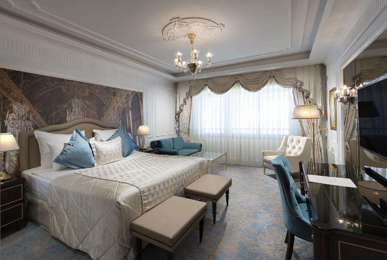 Szobák: A resort több szárnyban és kategóriában kínál szállást – a főépület elegáns, klasszikus stílusú szobái mellett modernebb, családbarát kerti üdülőrészleg is rendelkezésre áll. Minden standard kerti szoba a kétszintes villaépületekben található, egy hálószobás (~30m2) praktikusan berendezett, fürdőszobával, légkondicionálóval, hajszárítóval, síkképernyős tv-vel és telefonnal, vízforralóval (tea és kávékészítési lehetőség), széffel és minibárral felszerelt. A szobákhoz erkély vagy terasz tartozik kertre néző kilátással. Ugyanitt lehetőség van családi duplex szobák foglalására (4-5 főre, ~78m2) ahol többgyermekes családok számára az elhelyezése kényelmes, galériás lakóegységben (földszinten nappali és emeleti hálószoba, két fürdőszoba). A lenyűgöző főépületben található standard szobák (~34m2) berendezése elegánsabb, a fürdőszobai kád pezsgőfürdővel is felszerelt azonban a szobák többségéhez itt nem tartozik erkély.