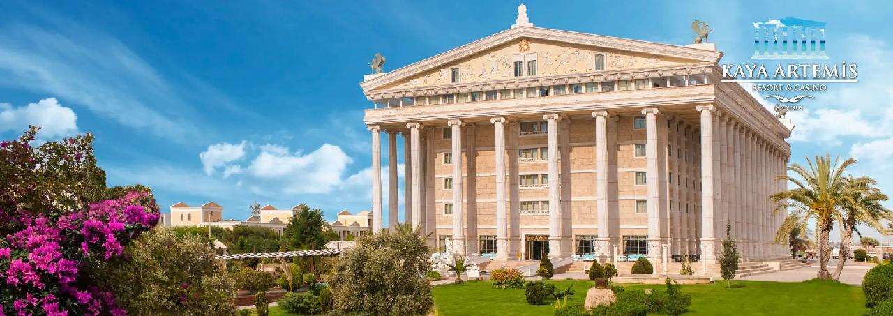 Fekvése: A Kaya Artemis Resort & Casino a Kaya Hotels lánc tagja, és Észak-Ciprus egyik legnagyobb, legjobban felszerelt üdülőszállodája, amely a luxus nyaralások és az all inclusive pihenések etalonja.Ciprus északi, a törökök által lakott részén, Famagusta központjától kb. 40 km-re a Karpaz félszigeten találhat, hatalmas, 16 hektáros (központi épület és villák) területen elhelyezkedő, különleges hangulatú, 2007-ben épített, hétszázharmincnégy szobás szálloda. A szálloda építészeti stílusa az ókori Artemis templomot idézi – grandiózus, impozáns főépülete és elegáns közösségi terei ámulatba ejtőek. A hotel egy csodálatos, finomhomokos, hosszú privát tengerparton helyezkedik el, saját napernyőkkel és napágyakkal. A környék csendes, nyugodt, elsősorban a pihenést és a luxust kereső utazóknak ideális. A komplexum saját kaszinóval, hatalmas wellnessközponttal, aquaparkkal és számos étteremmel, bárral is rendelkezik. A Larnaca nemzetközi repülőtér kb. 95–100 km távolságra, a repülőtérről a szállodáig tartó transzferidő kb. 1 óra 45 perc – 2 óra, az határátkeléstől függően. A Kaya Artemis Resort & Casino tökéletes választás azok számára, akik luxusszintű pihenésre, gazdag szolgáltatásokra és exkluzív tengerparti környezetre vágynak. Családok, párok és incentive csoportok számára egyaránt ideális. A hotel egy valódi „mini város”, ahol minden megtalálható: strand, szórakozás, gasztronómia, wellness és kaszinó. Foglaljon most!