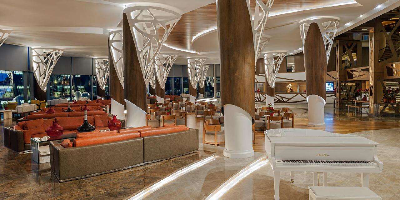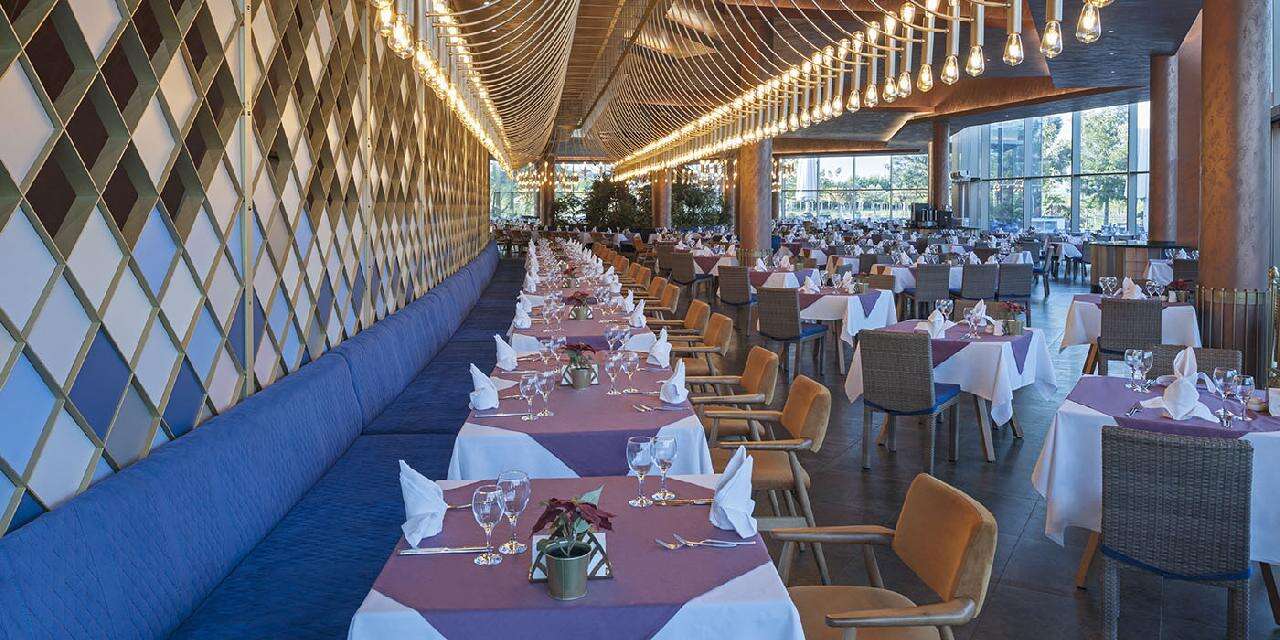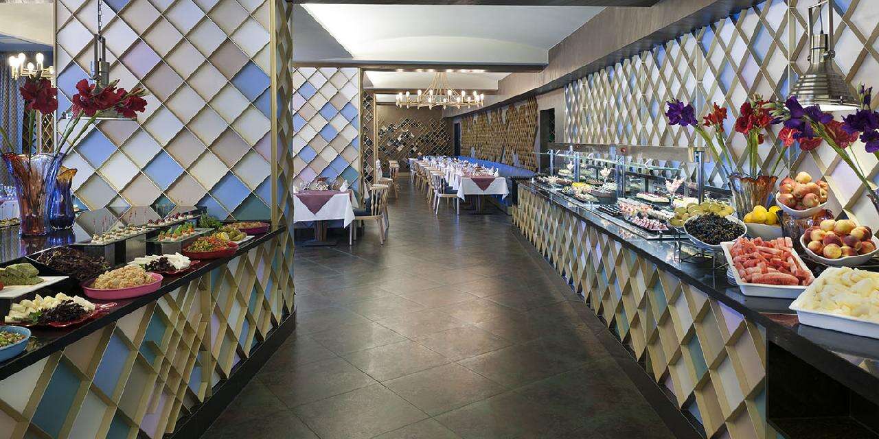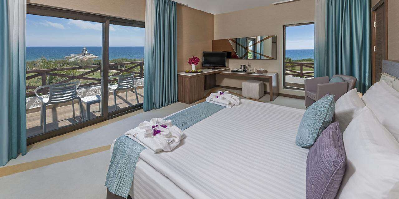 Ellátás: Ultra alll inclusive ellátás, benne: svédasztalos reggeli (07:00-11:00), svédasztalos ebéd (12:00-14:30), svédasztalos vacsora (19:00-21:30) és éjjeli snack vacsora (00:00-01:30) a központi étteremben, napközben snackbüfé a tengerparti étteremben (12:30-16:30). Sütemények, kávé és tea szünet a főépületi kávézóban és a Beach bárban (17.00-18.00), jégkrém a snack étteremben (12.30-15.30). Korlátlan és térítésmentes italfogyasztás az étkezések alatt a központi étteremben illetve a Relax (10:00-18:00); Fora (11:00-16:30), Aquapark (10:00-17:30), Villa-pool (10:00-19:00), Beach (10:00-01:00), Moon Arena (20:00-00:00) bárokban és a főépületi kávézóban (10:00-20:00) az italválaszték a szálloda által meghatározott import prémium márkás italokra és koktélokra, teára, gépi kávéra és török kávéra szól, azonban az a palackozott italokra és a frissen facsart narancslére és főzött kávékra nem vonatkozik. Térítésmentes minibár fogyasztás (naponta ingyenes feltöltés, üdítőitalok, ásványvíz és sör), csúszdapark használata 10:00-12:00 és 14:00 -17:30 között, WiFi internetkapcsolat, szauna, gőzfürdő, törökfürdő, fedett medence és az edzőterem használata. A megjelölt időpontokon kívül illetve a szálloda további bárjaiban és éttermeiben a fogyasztásért illetve a strandon privát pavilonbérlésért és vízipipa használatért térítést kell fizetni.