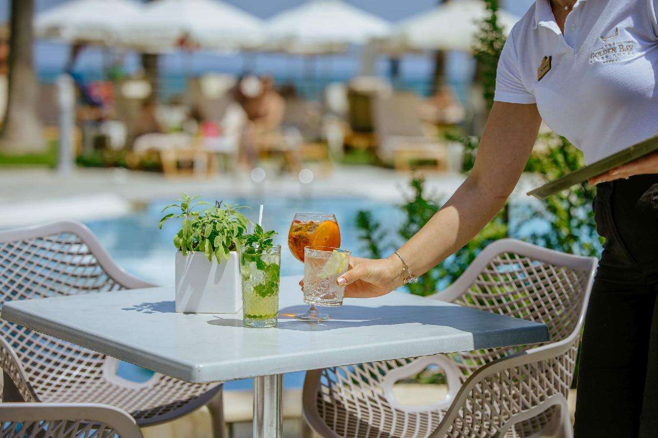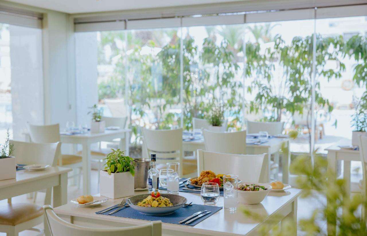 Étkezés: svédasztalos reggeli. Friss gyümölcsök, pékáruk, hideg és meleg fogások, tojásételek, zöldségek, joghurtok és különféle italok – kávé, tea, friss gyümölcslevek – teszik teljessé a kínálatot.. A félpanziós ellátás a reggelin kívül vacsorát is tartalmaz. A vacsora is svédasztalos formában zajlik, amely a nemzetközi és helyi ízek változatos kombinációját nyújtja. A vendégek helyi ciprusi specialitásokat is kóstolhatnak, valamint élvezhetik a tematikus estek változatos fogásait. A teljes ellátás a három főétkezést tartalmazza (a félpanzió + ebéddel egészül ki). Az all inclusive ellátás magában foglalja a napi három főétkezést – reggelit, ebédet és vacsorát –, amelyeket svédasztalos formában érhető el, nemzetközi és helyi ízek változatos kombinációját kínálja. Az étkezések mellé különféle italokat kínálnak, beleértve a helyi alkoholos italokat, borokat, valamint az alkoholmentes frissítőket is, amelyeket a korlátlanul fogyaszthatnak a vendégek 10-23 óra között. A vendégek emellett több bár közül választhatnak, ahol széles italválasztékot kínálnak. Az italválaszték a szálloda által meghatározott az itallapokon ALL jelöléssel található. Mind a reggeli, ebéd és vacsorák során kiemelt figyelmet fordítanak az ételek minőségére, frissességére, és igyekeznek minden ételallergiát vagy diétás igényt is kielégíteni. Napközben snackek és könnyű ételek is elérhetők, valamint jégkrémek, kávé és sütemények a délutáni órákban.