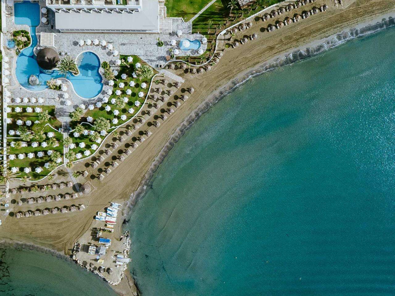 Fekvése: A Golden Bay Beach Hotel Larnaca egyik legexkluzívabb és legismertebb 5 csillagos,194 szobás tengerparti szállodája, amely a várostól mindössze néhány kilométerre, a festői Oroklini partszakaszon helyezkedik el, közvetlenül a lassan mélyülő homokos tengerparton található. Larnaca városközpontja tíz kilométer, ahová taxival vagy tömegközlekedéssel is el lehet jutni (hétköznapokon, buszmegálló a szálloda előtt). Ha egy igazán különleges tengerparti nyaralásra vágyik, ahol a luxus, a kényelem és a lenyűgöző környezet találkozik egymással, akkor ez a szálloda a tökéletes választás. Legyen szó egy romantikus kiruccanásról, egy családi nyaralásról, vagy akár egy exkluzív üzleti útról, a szálloda minden részlete a vendégek legmagasabb szintű kiszolgálásáról szól. Foglalj most, és tapasztalja meg a luxust és a nyugalmat Larnaca Aranypartján!