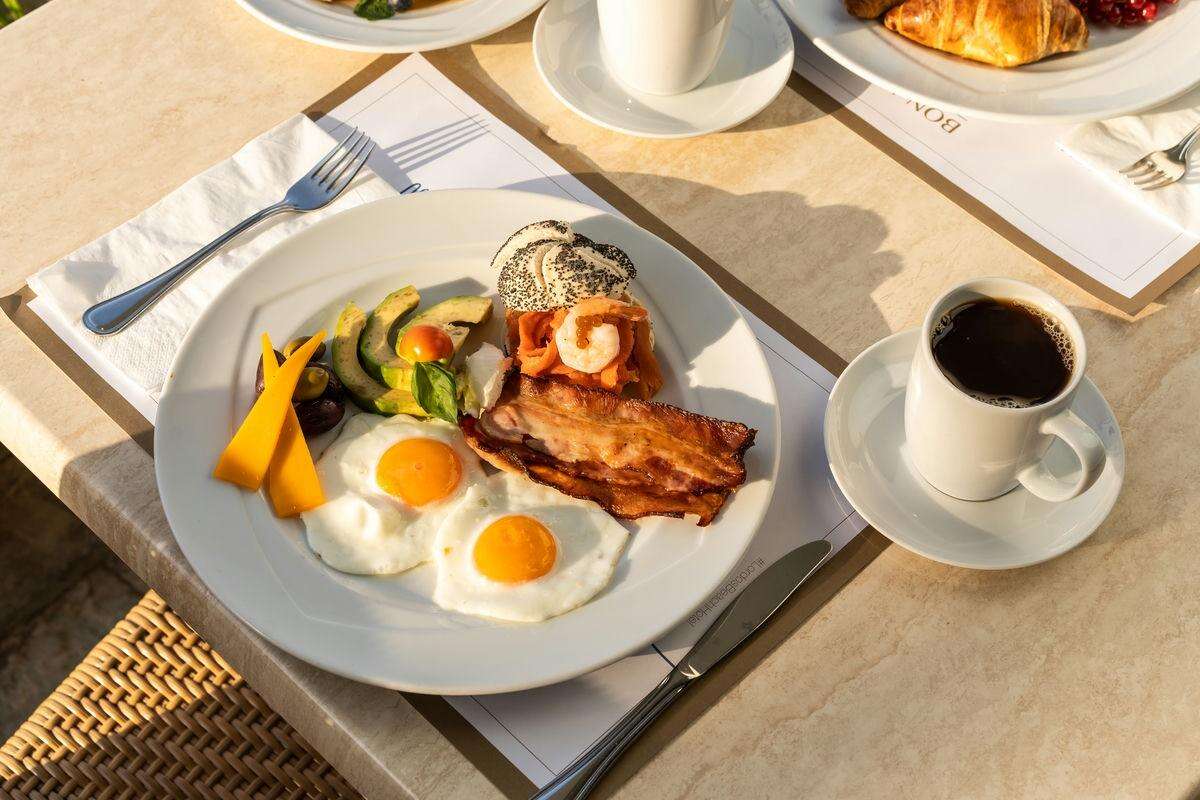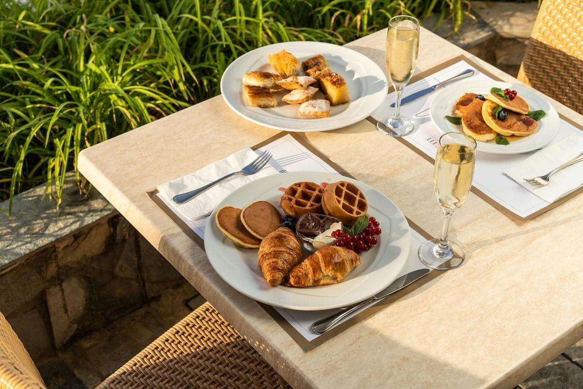 Étkezés: svédasztalos reggeli. Friss gyümölcsök, pékáruk, hideg és meleg fogások, tojásételek, zöldségek, joghurtok és különféle italok – kávé, tea, friss gyümölcslevek – teszik teljessé a kínálatot.. A félpanziós ellátás a reggelin kívül vacsorát is tartalmaz. A vacsora is svédasztalos formában zajlik, amely a nemzetközi és helyi ízek változatos kombinációját nyújtja. A vendégek helyi ciprusi specialitásokat is kóstolhatnak, valamint élvezhetik a tematikus estek változatos fogásait. A teljes ellátás a három főétkezést tartalmazza (a félpanzió + ebéddel egészül ki). Az étkezések során kiemelt figyelmet fordítanak az ételek minőségére, frissességére, és igyekeznek minden ételallergiát vagy diétás igényt is kielégíteni.