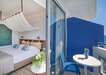 Szobák: minden classic szoba modern bútorokkal berendezett, hagyománykövető mediterrán színvilágú, egy hálószobás (~23m2), fürdőszobás, légkondicionálóval, síkképernyős tv-vel, hajszárítóval, széffel és telefonnal felszerelt. Minibár fogyasztás, térítés ellenében. A szuperior (~23m2), elegáns berendezéssel, extra kényelmi eszközökkel felszerelt pl: vízforraló (tea és kávéfőzési lehetőség), fürdőszobai köntös és papucs. A családi (~23m2) szobák játékos és modern kialakításúak, családias és otthonos légkörrel, a gyermekek elhelyezési emeletes ágyon történik, felszeltségük a classic szobákkal azonos. A prémium szobák (~23m2), felszereltségben megegyeznek a szuperior szállodai szobákkal, egyedi karakterrel rendelkeznek; magas szintű kényelmet biztosítanak, a szobákban extraként eszpresszó kávéfőző is található. Mindegyik (classic, szuperior, prémium, családi) szobához erkély tartozik oldal tengerre néző kilátással.