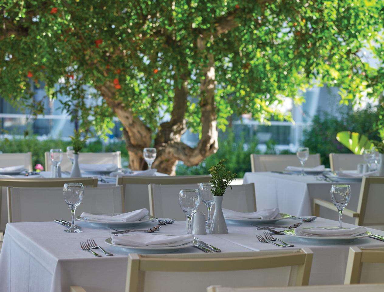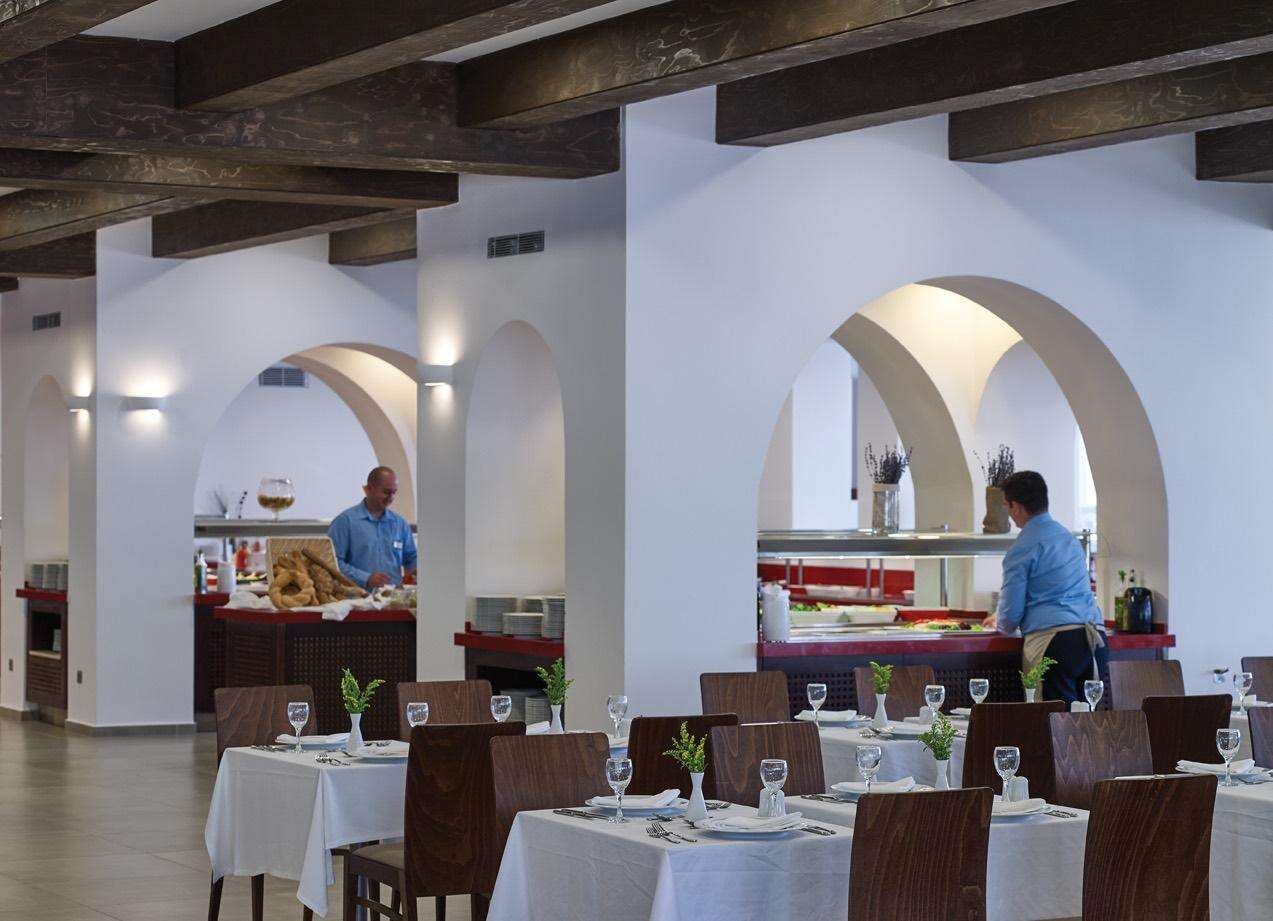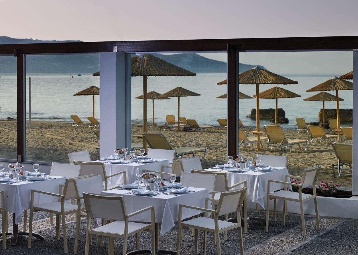Étkezés: all inclusive ellátás. A főétteremben bőséges svédasztalos reggeli, ebéd és vacsora várja a vendégeket nemzetközi és görög specialitásokkal. A nap folyamán snackek, sütemények, fagylalt, valamint helyi alkoholos és alkoholmentes italok fogyaszthatók a kijelölt bárokban 10-24 óra között. A tematikus éttermekben előzetes foglalással vacsoralehetőség biztosított.