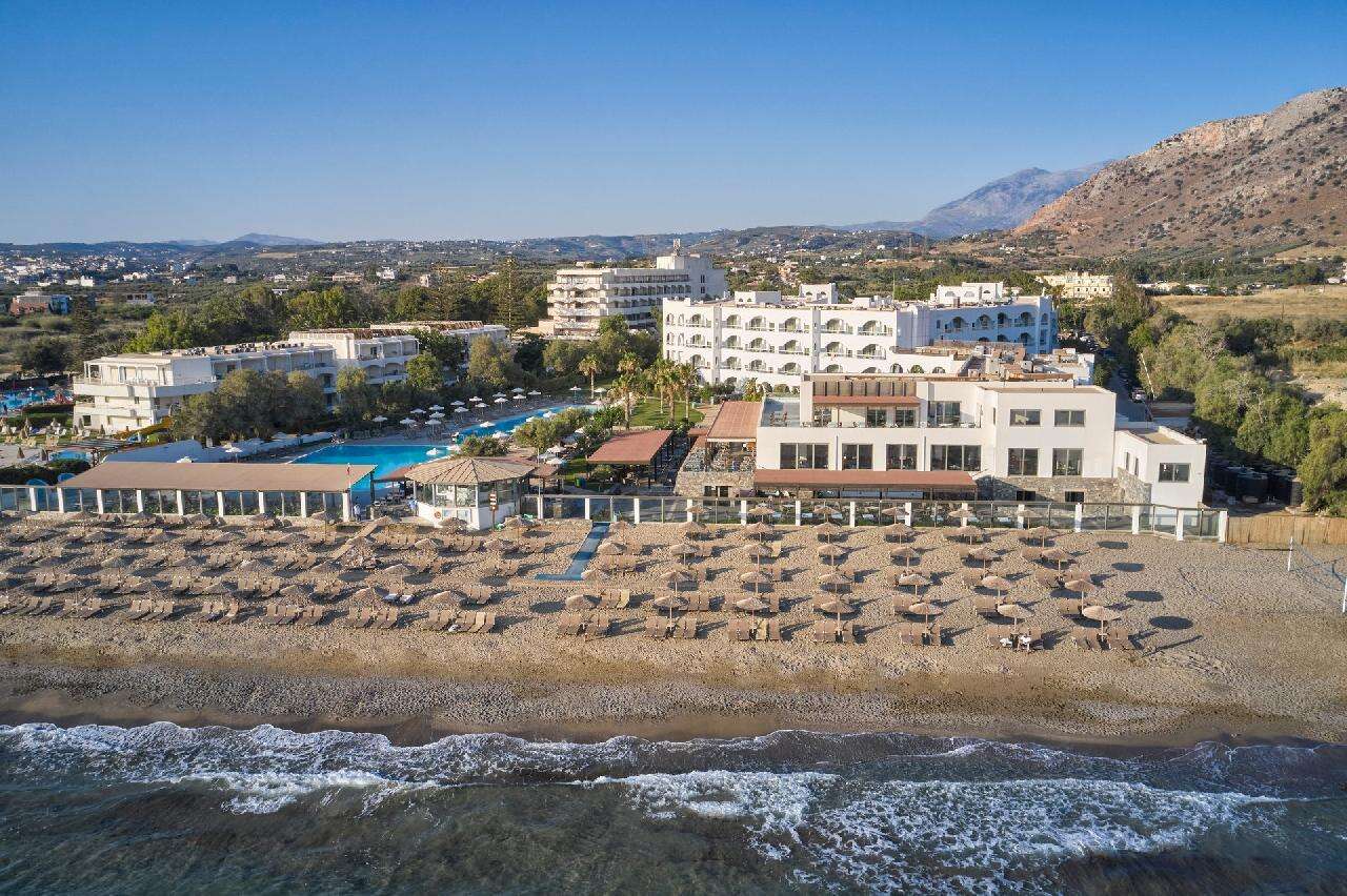 Fekvése: az Atlantica Akti Zeus Hotel közvetlenül a homokos-aprókavicsos tengerparton, Ammoudara üdülőhelyén helyezkedik el, a történelmi Heraklion városától mindössze néhány kilométerre. A Heraklion nemzetközi repülőtér is könnyen elérhető rövid transzferrel vagy taxival, így ez az elhelyezkedés ideális választás mind családok, mind párok számára. A szálloda nagy kiterjedésű, zöld parkosított területen fekvő, modern stílusú, több épületből és bungalós részből áll, a partszakasz lassan mélyülő, napágyakkal és napernyőkkel felszerelt, ami kényelmes fürdőzést biztosít a vendégeknek. A hotel környezete barátságos, közelben üzletek, éttermek és kávézók találhatók, és jó buszkapcsolat biztosítja, hogy Heraklion központja is könnyen elérhető legyen. Az Atlantica Akti Zeus Hotel kiváló választás azon utazók számára, akik egy all inclusive tengerparti nyaralást keresnek Kréta mediterrán hangulatában, könnyű eléréssel a repülőtértől és Heraklion városától. A hotel egyaránt megfelel családoknak és pároknak, hiszen kombiálja a vízi szórakozást (aquapark, medencék) a pihenést kínáló wellness és sportolási lehetőségekkel, emellett változatos étkezési opciókat biztosít.