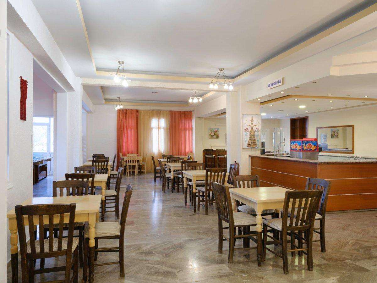 All inclusive ellátás. A főétteremben svédasztalos reggeli, ebéd és vacsora fogyasztható görög és nemzetközi ételekkel. A nap folyamán snackek, sütemények, valamint helyi alkoholos és alkoholmentes italok állnak rendelkezésre a kijelölt bárokban az előre meghatározott időszakokban.