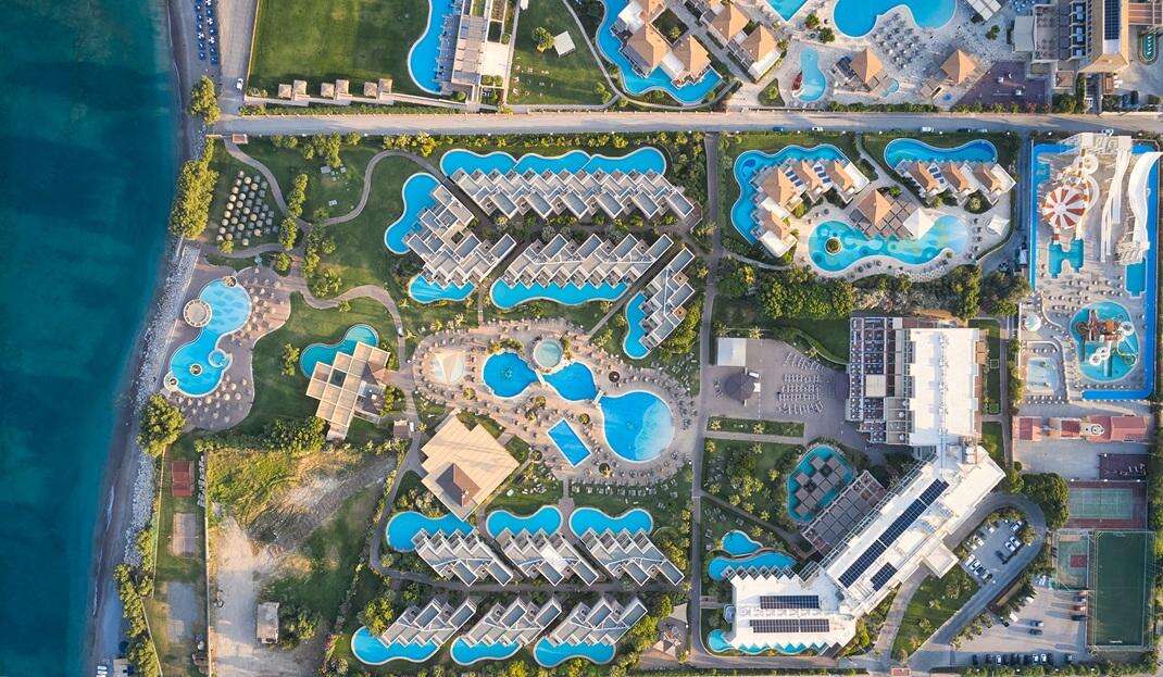 Fekvése: az Atlantica Aegean Blue hotel Rodosz (Rhodosz) szigetén, Kolymbia festői tengerparti üdülőhelyén található, közvetlenül a kristálytisztaÉgei-tenger partján. A szálloda közvetlen hozzáférést biztosít a tengerhez és a strandhoz, amely néhány lépésre fekszik, így ideális választás mind családok, mind párok számára. Kolymbia központja és helyi üzletei, tavernái gyalogosan is könnyen elérhetők, kb. 950 m-re a hoteltől. A történelmi Rodosz városa kb. 22–25 km-re, a Rodosz nemzetközi repülőtér pedigkb. 30 km-re található a szállodától, mely kényelmes kiindulópontot biztosít a sziget felfedezéséhez.