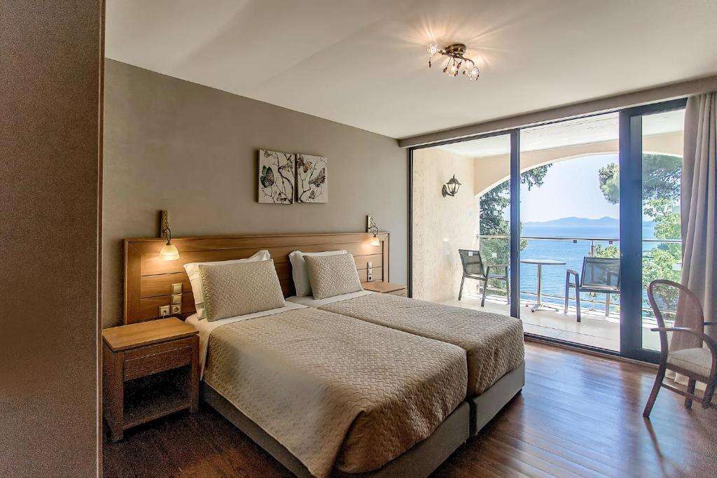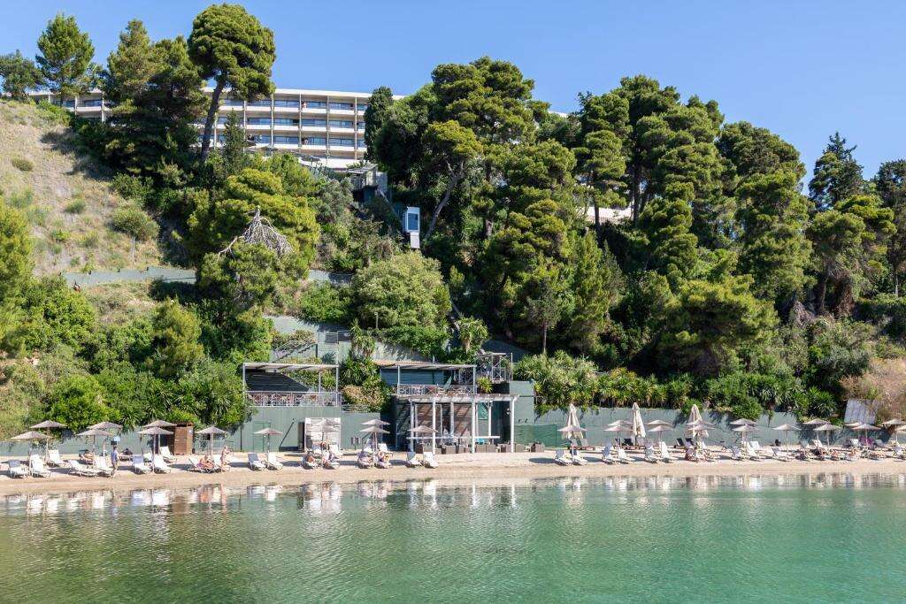 A festői Kanoni-félszigeten található, elegáns, nagy múltú Corfu Holiday Palace Hotel Korfu szigetének egyik legismertebb és legkedveltebb szállodája. A gondozott, zöld kerttel körülvett szálloda lenyűgöző panorámát kínál a Jón-tengerre, az Egérszigetre (Pontikonissi) és a Vlacherna kolostorra. Saját stranddal rendelkezik, amely egy ferde lifttel közelíthető meg, Korfu város történelmi óvárosa pedig kb. 10–15 perces autóútra található.
