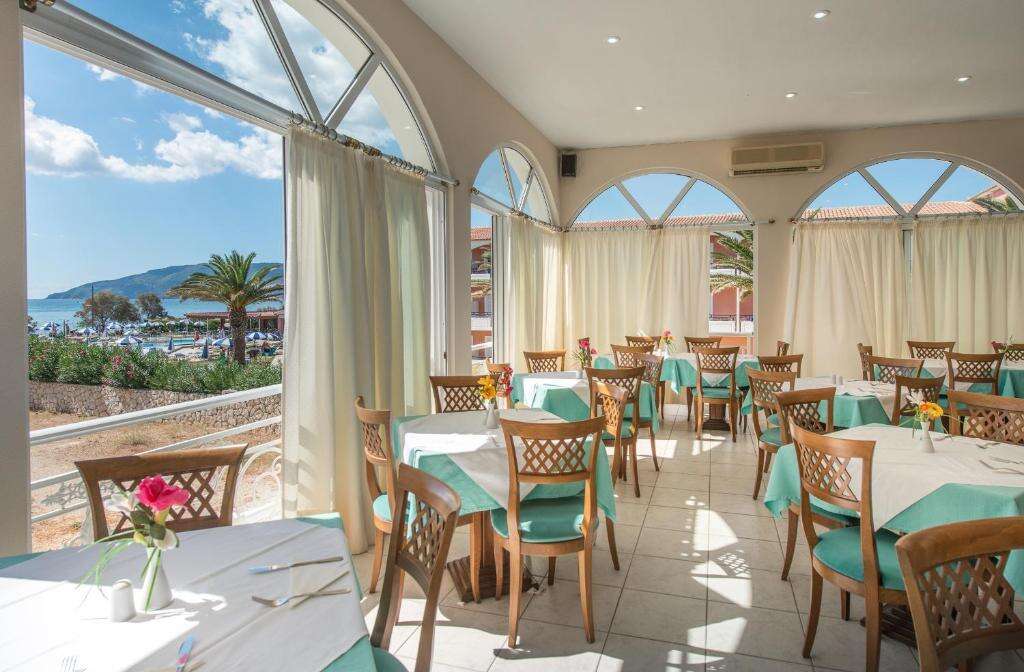 A kedvelt Laganas üdülőhely központi részén, közvetlenül a széles, finomhomokos tengerparton fekszik. A hosszú, lassan mélyülő partszakasz miatt különösen népszerű családok körében is. A főutca, éttermek, bárok, üzletek és szórakozási lehetőségek mind könnyű sétatávolságra találhatók. A repülőtér kb. 7 km-re, Zakynthos város kb. 9 km-re helyezkedik el.