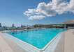 Úszómedence, napernyők és napágyak a medencénél ingyenesen, a tengerparton térítés ellenében.