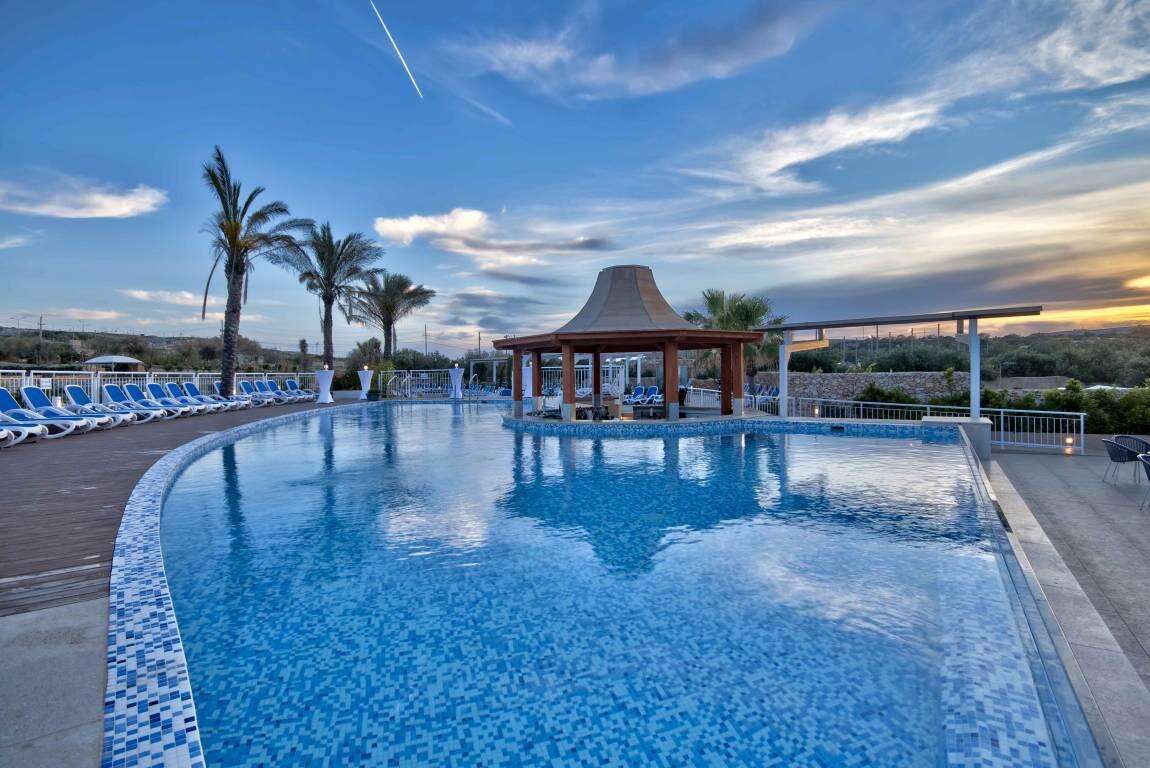 egyedülálló fekvéssel, Mellieha (Ghadira) Bay-ben, Málta legnépszerűbb és leghosszabb, lassan mélyülő homokos strandjánál található. Modern újépítésű, több mint 530 szobás, all inclusive szálloda és üdülőközpont, mely a homokos strandtól 50 méterre (attól csak egy autóút választja el) fekszik.