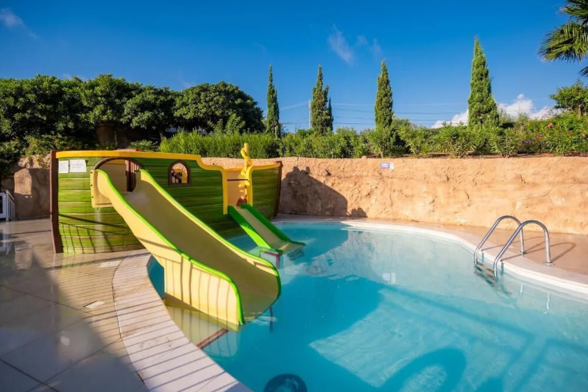 Szobák: minden standard szoba (ˇ24m 2) egyhálószobás, szépen berendezett, fürdőszobás, légkondicionálóval, hajszárítóval, LCD tv-vel, minibárral, telefonnal, WiFi internetkapcsolattal (térítésmentes), vízforralóval (kávé és teakészítési lehetőség) és szobaszéffel felszerelt. A családi szobák felszereltségben megegyeznek a standard szállodai szobákkal, nagyobb alapterületűek (kb.40m2), paravánfallal (tolóajtó) elválasztható két hálórésszel (két-két ággyal) rendelkezik. A szobákhoz erkély vagy terasz tartozik, melyek a környező domboldalra, a medencére, vagy a tengerre nézhetnek. A négyágyas szobák ugyanezzel a felszereléssel rendelkeznek mint a standard szobák, de nagyobbak (kb. 36m2) és maximum 4 fő elszállására alkalmasak.