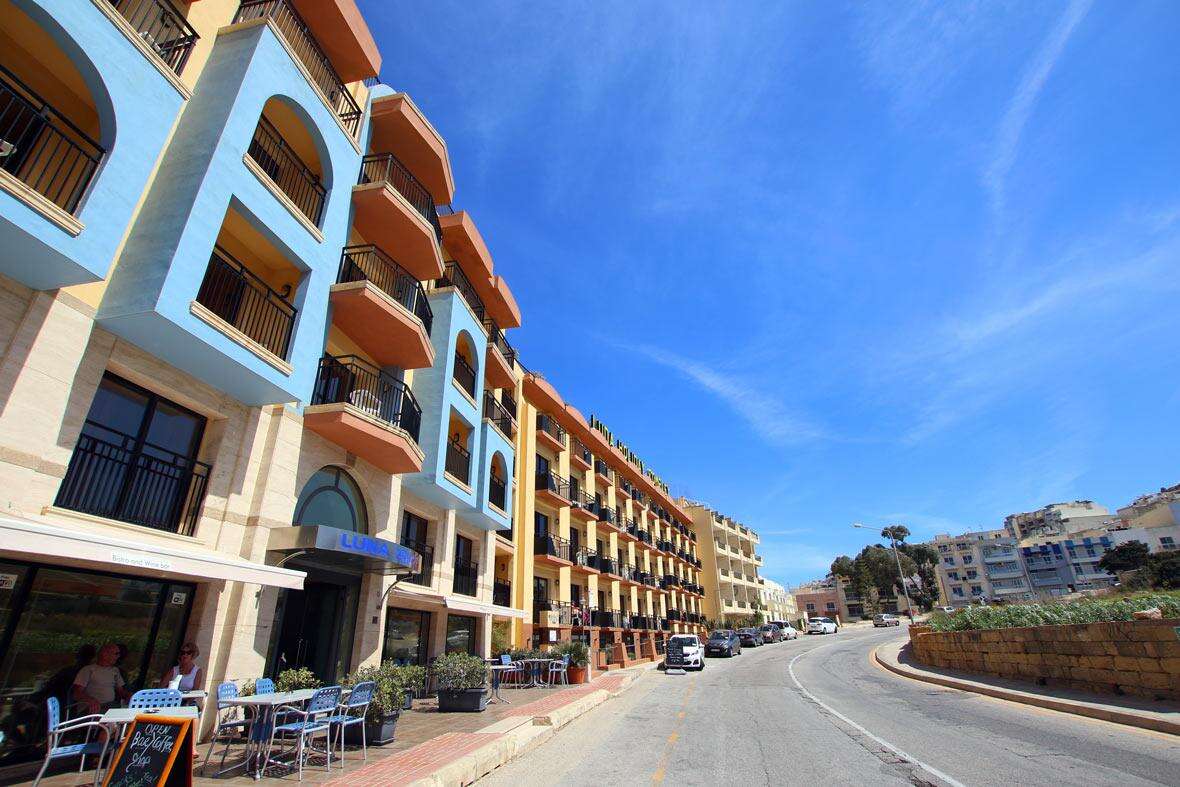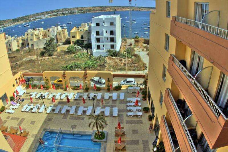 népszerű, több épületből álló, modern, jól felszerelt apartmanhotel, ideális helyen, a Mellieha Bay közelében, a legközelebbi beach klubtól háromszáz, a homokos szabad strandtól ötszáz méterre található.