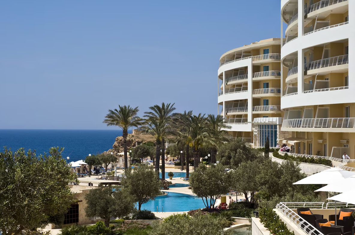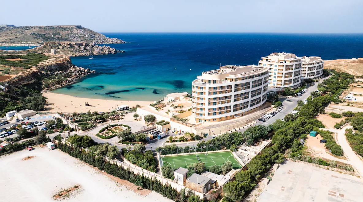 Fekvése: A szálloda Málta nyugati partján, a festői Golden Bay homokos strandja felett helyezkedik el, közvetlen tengerparti elhelyezkedéssel.