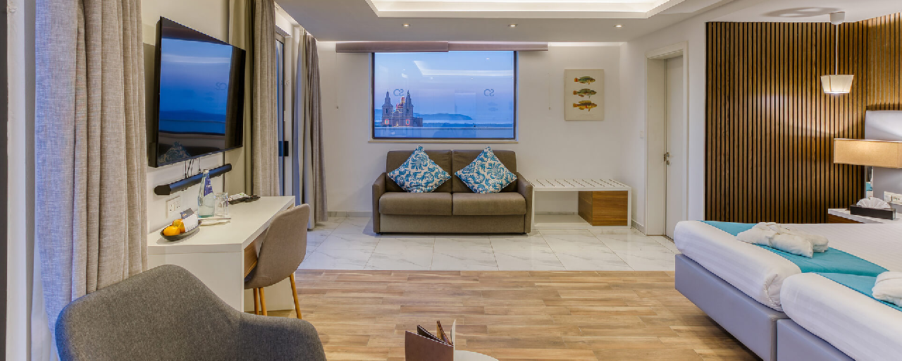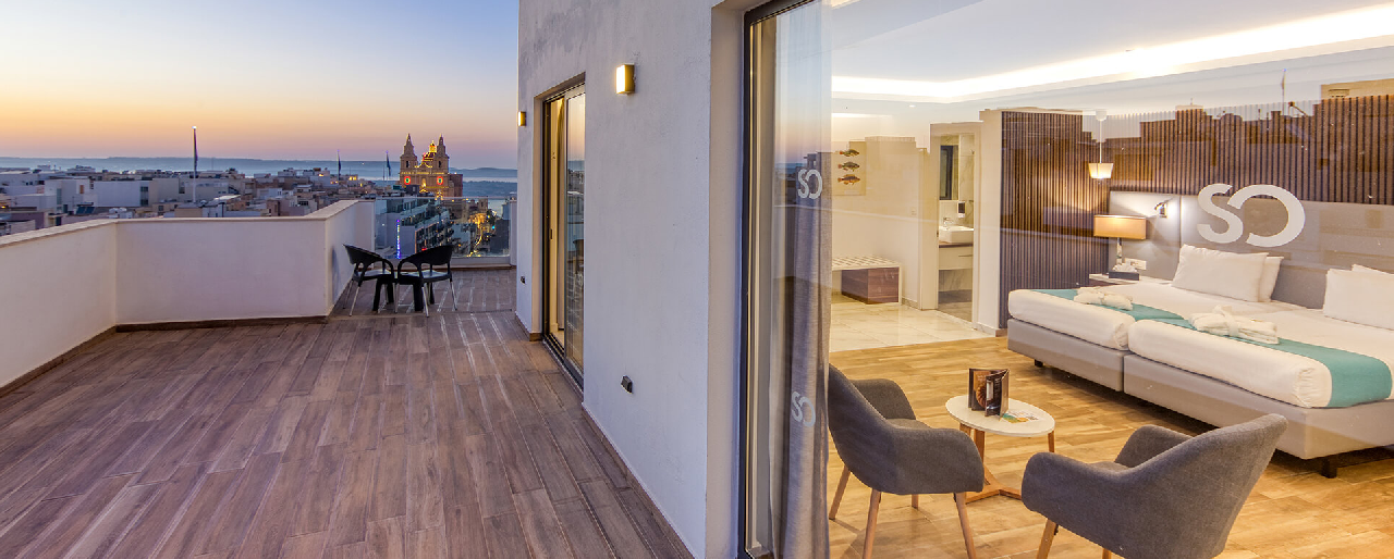 A Solana Hotel & Spa Észak‑Máltán, a bájos Mellieħa falujában található, csendes, festői környezetben.
