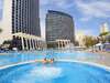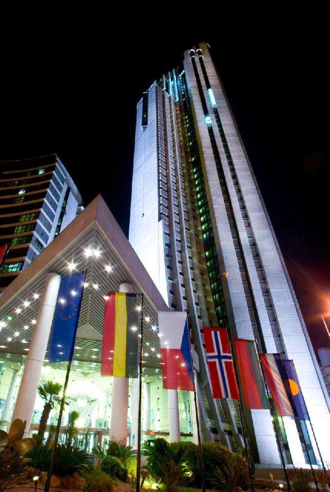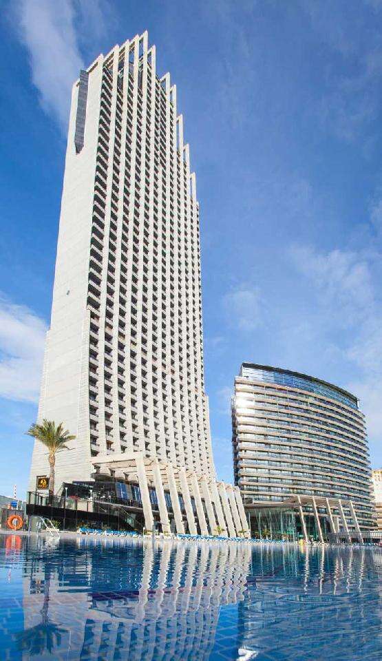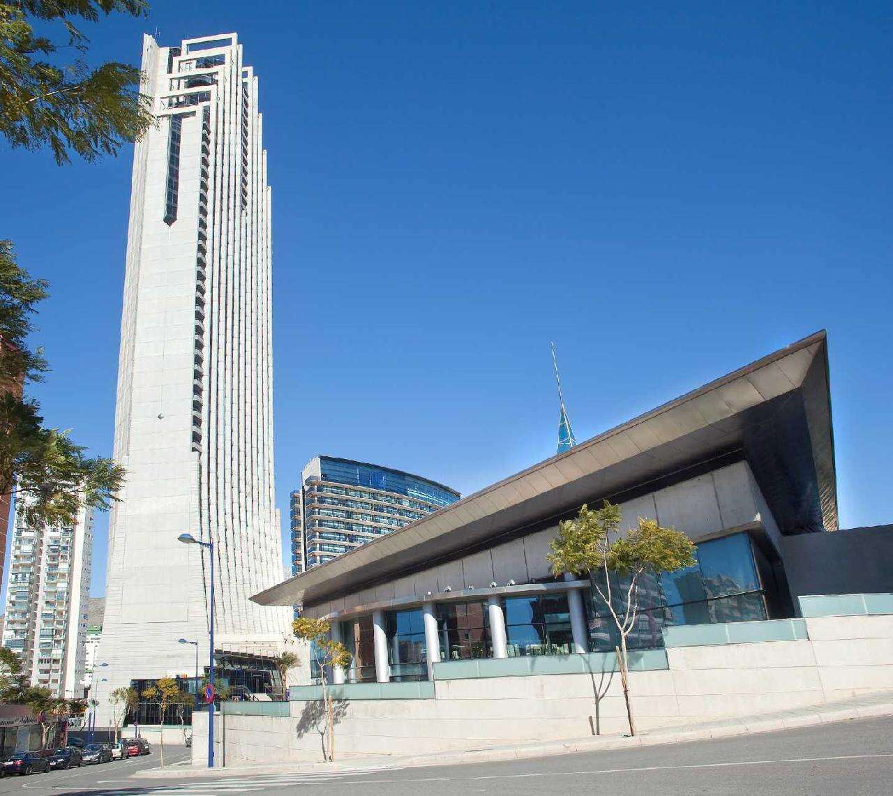 Fekvése: a kétségtelenül utasaink körében a legnépszerűbb, hatalmas területen fekvő, népszerű 776 szobával rendelkező szálloda Alicante repülőterétől kb. 45 percnyi transzferútra, Benidorm bevásárlóközpontjától 600 méterre, az óvárostól 3 km-re található. A hotel egy 186 m magas üvegpalota, gyönyörű kilátással a kék zászló minősítésű Poniente tengerpartra (450 m) és este a kivilágított városra. A menetrend szerinti buszmegálló a szálloda mellett található, ahonnan gyakori buszjáratok indulnak Benidorm belvárosába - a megrendelhető buszos transzferek is ebben a megállóban állnak meg.